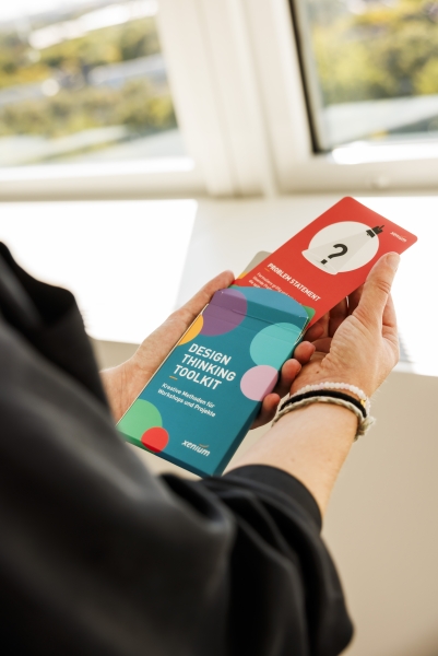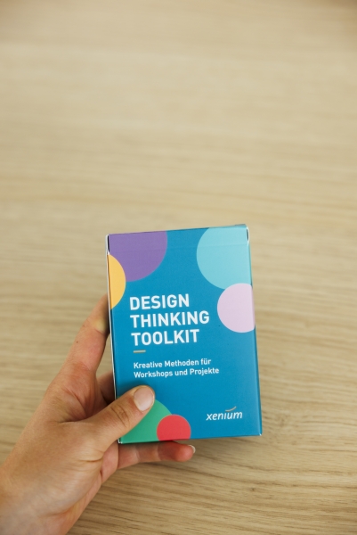 Das Design Thinking Toolkit besteht aus Moderationskarten für die verschiedenen Phasen des Design-Thinking-Prozesses.