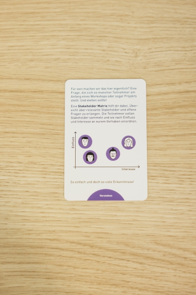 Du möchtest einen ganzen Design-Thinking-Workshop moderieren? Dann zieh eine Karte pro Farbe und es kann losgehen.